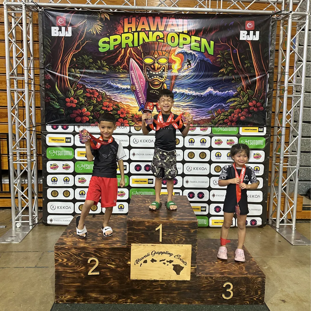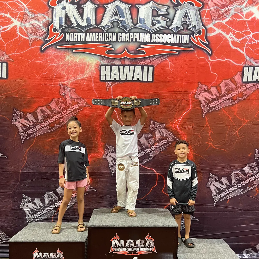 For Little Sheep & Slingshot students who want more than recreational training, our Competition Team provides a clear pathway to test their skills under real pressure and grow through it. Competition at DVG is not something you casually join, it’s something you earn. When our coaches see the right level of focus, effort, and potential, students are invited to step into our competition prep classes held Monday through Thursday from 4:45–5:15 PM. From there, they begin developing the mindset, discipline, and technical sharpness required to perform against other schools in live tournament settings such as NAGA, FUJI, Grappling Industries, and the Hawaii Triple Crown.